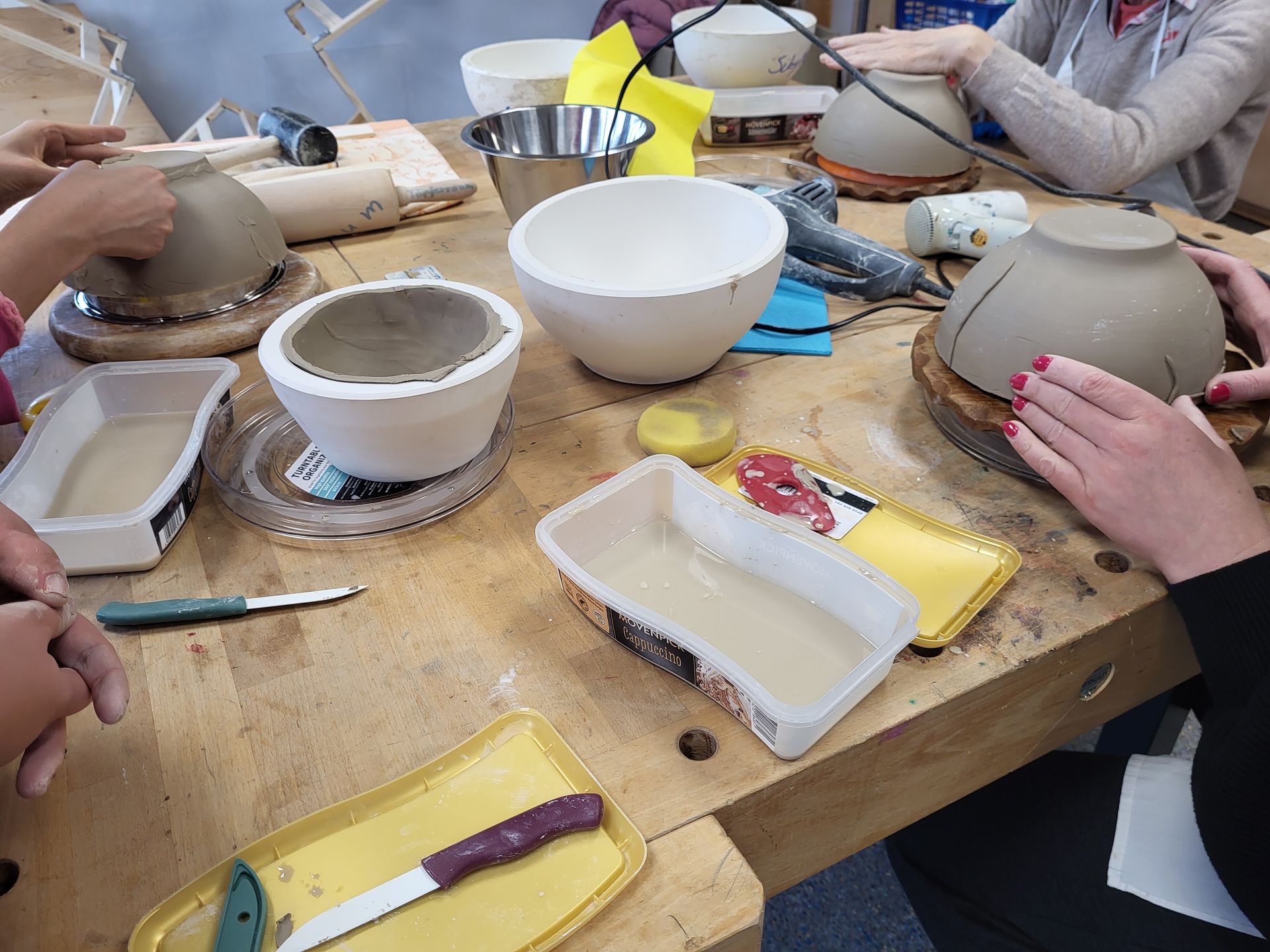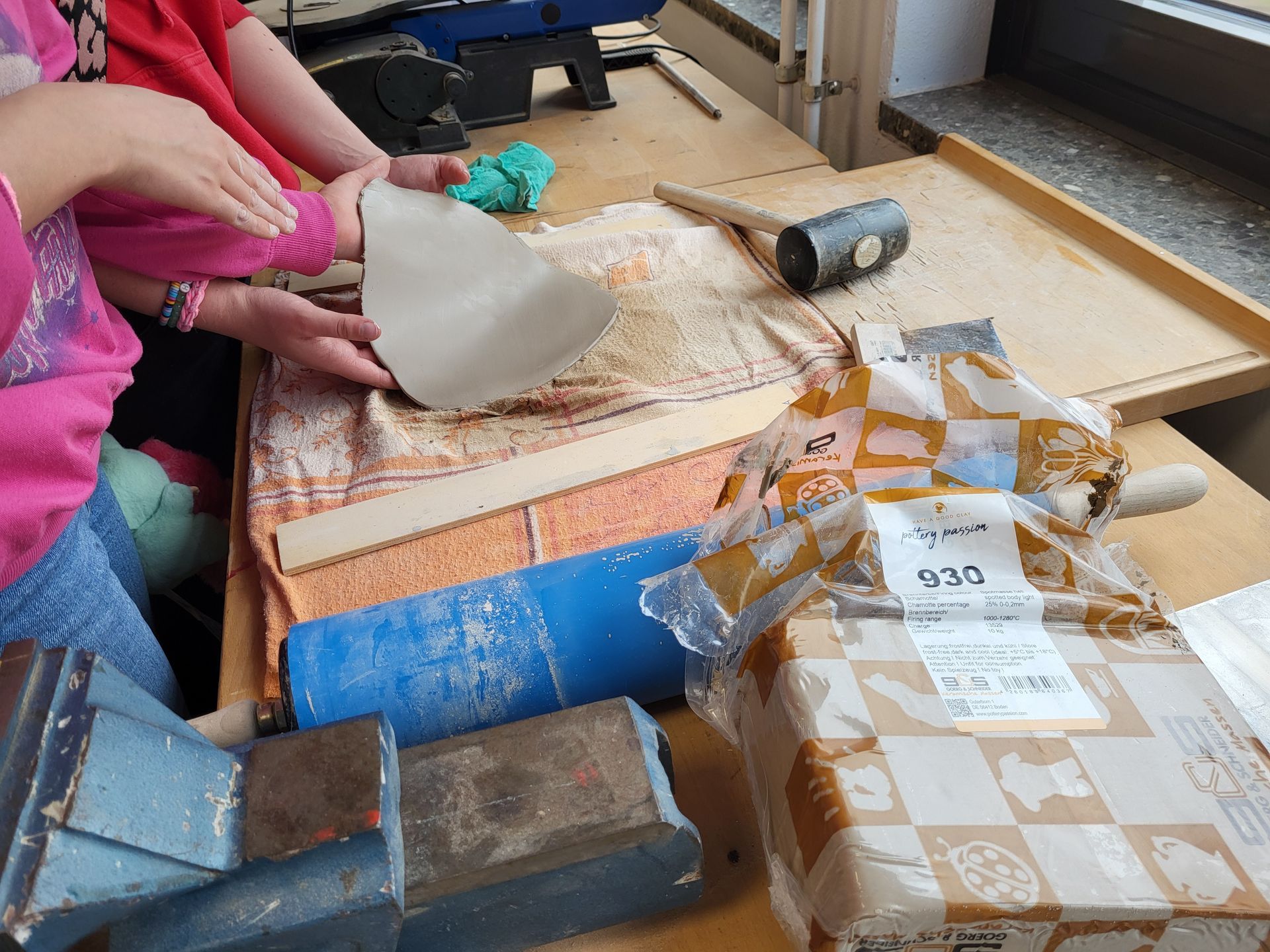 Die Schülerinnen und Schüler erlernen die einzelnen Arbeitsschritte zur Herstellung der Keramikschüsseln.